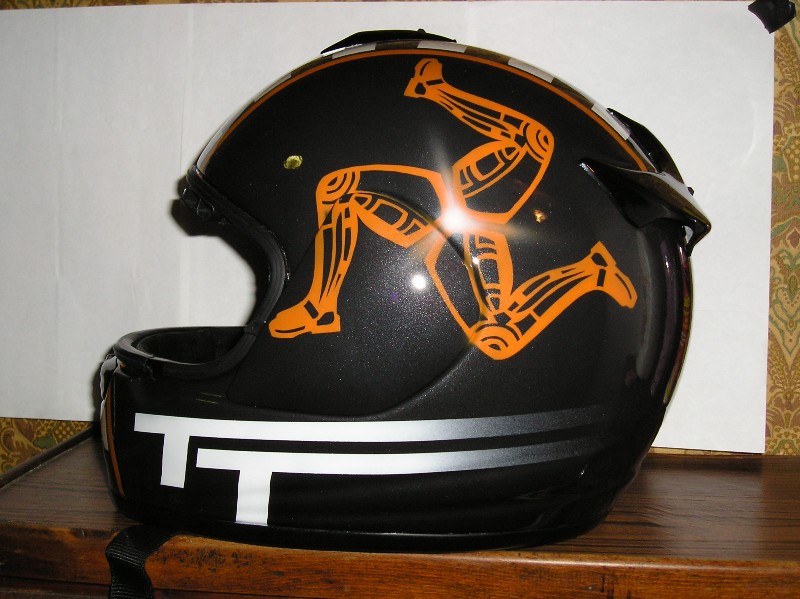 ragazzi ho appena finito di far aerografare il mio arai, ho scelto il tema in base al viaggio che farò quest' estate, irlanda! naturalmente passerò dall' isola di man per ripercorrere la strada della gloriosa corsa, il mitico TT, ed ecco a voi il mio condor, più o meno è simile nella colorazione al più costoso rx-7 ma io l' ho fatto personalizzare con il colore della mia orangissima tiger