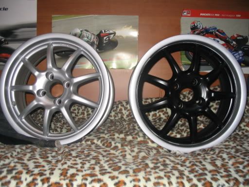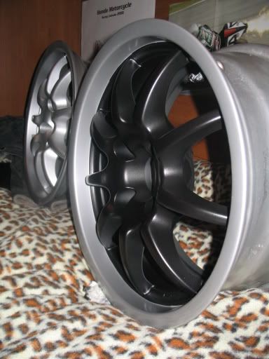 intanto i cerchi presi da daniel M presi molto tempo a dietro degli antera 321 da 15 con canale da 7 e li rimetto un pò in sesto.............e da grigi li faccio cosi' con le bombolette!! ( non terranno a lungo !! )